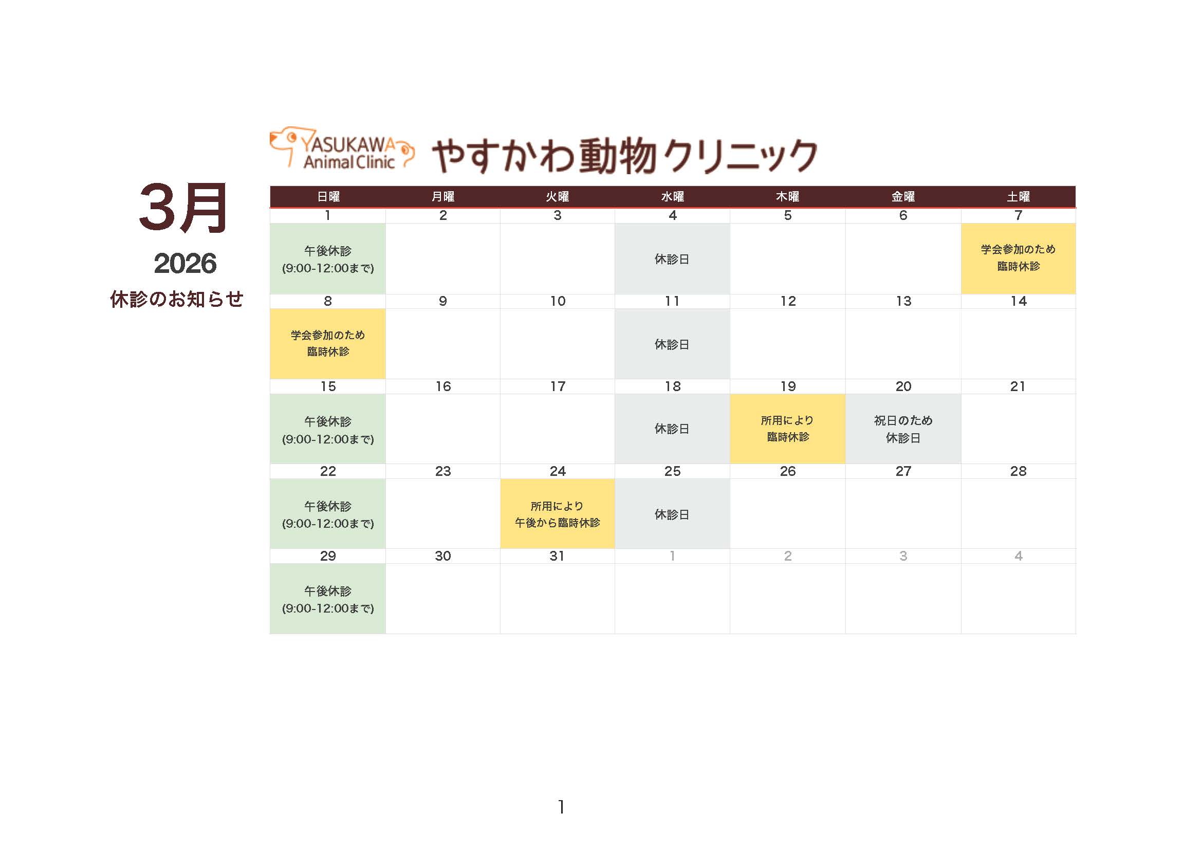 2月、3月の休診・臨時休診について